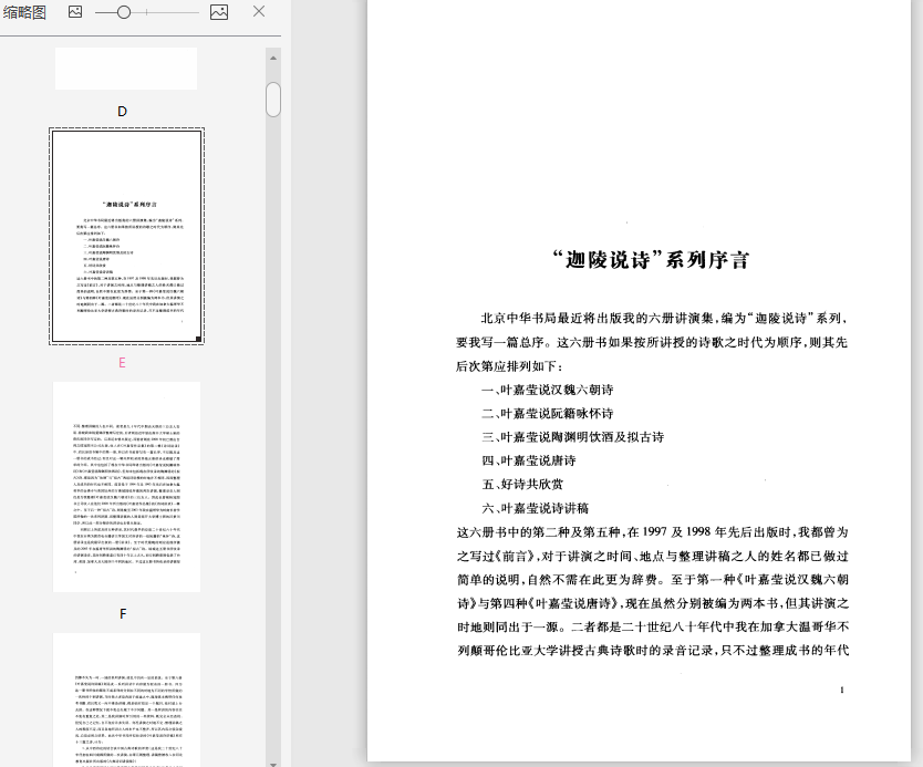迦陵说诗 (共8册), 这套丛书还有 《叶嘉莹说诗讲稿》,《好诗共欣赏》,《叶嘉莹说陶渊明饮酒及拟古诗》,《叶嘉莹说阮籍咏怀诗》,《叶嘉莹说初盛唐诗》 等。