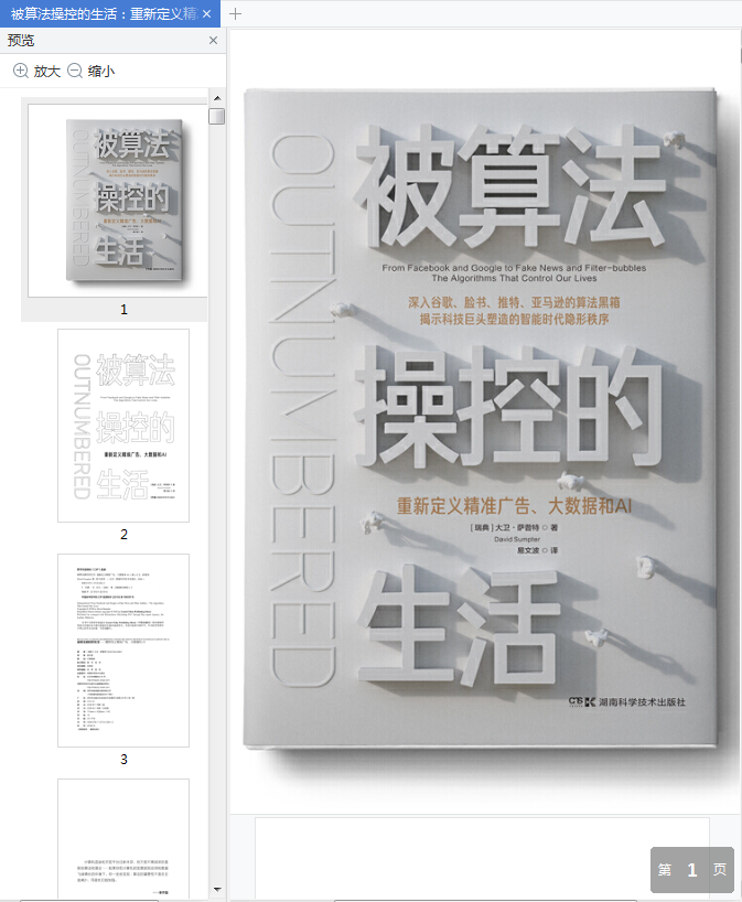 对于非程序员和人工智能相关的人非常友好,深入浅出,对算法有一个比较全面和辩证的了解,被算法操控的生活:重新定义精准广告、大数据和AI一书帮助了解生活中的算法,但讲得有点不够利索,感觉还不如看《数学之美》+《智能时代》。