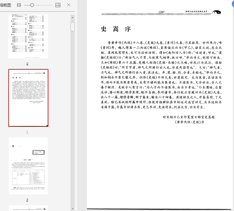 《灵枢》,亦称《九卷》、《针经》、《九灵》、《九墟》等。汉魏以后,由于长期抄传出现多种不同名称的传本。唐·王冰所引用古本《针经》传本佚文与古本《灵枢》传本佚文基本相同,说明为一共同的祖本。但与南宋史崧发现的《灵枢》传本(即现存《灵枢》传本)则不尽相同。史载北宋有高丽献《针经》镂版刊行,今无书可证。至南宋初期。《灵枢》和《针经》各种传本均失传。绍兴二十五年(1155),史崧半其家藏《灵枢》九卷八十一篇重新校正,扩展为二十四卷,附加音释,镂版刊行。至此,《灵枢》传本基本定型,取代各种传本,而一再印行,流传至今。