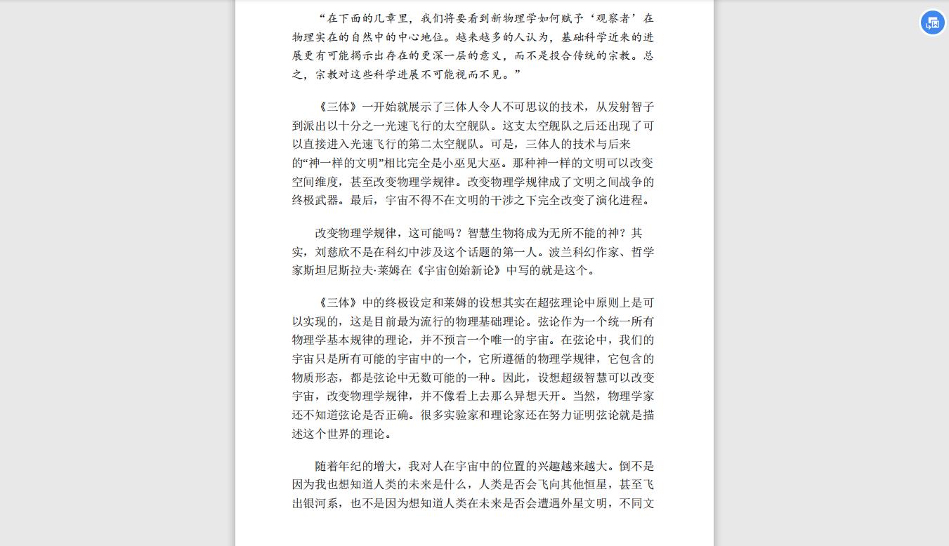 读完《〈三体〉中的物理学》后,我对李老师的眼界和胸怀深为敬佩,为之折服。本书几乎涉及物理学和宇宙学前沿的所有方面,在一本篇幅不长的书中展现了如此广阔的视野,呈现出如此丰富的内容,令人赞叹。