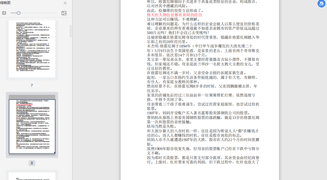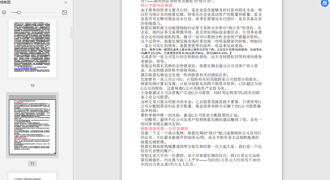 “比如在1922年初,格雷厄姆发表了一篇名为《铁路公司的投机机遇》的文章。‘因为单价低,所以上涨的可能性更大’,这种毫无逻辑的调调在今天互联网、电视屏幕和三流小报里也不少。看上去大师也不神秘,和我们一样,也是一步一步从‘韭菜’进化而来的。“
