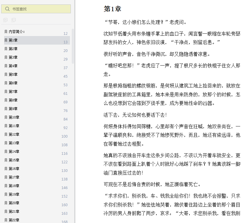 这是一个还算聪明的女人,沈知节不禁抬眼多看了她一眼,泪涕横流的脸,五官端正秀气,却因恐惧而微微变形,眼睛里都是泪,闪着渴求的光芒。不过,这并不能软化他冷硬的心,他依旧无动于衷,又低下头去包扎手上伤口,那是他从货车上跳下时伤到的,手掌摁到了路边一块带着利茬的石头上,差点被割成了两半。