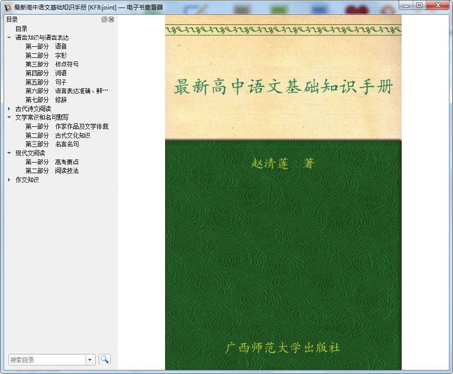 广西师大出版社出版的以新大纲为指导,以新教材和新考纲为依据,全面、准确、新颖地融合了初中语文基础知识的方方面面,具有较强的实用性和针对性,具有极高的资料性与工具性。《最新高中语文基础知识手册》可供平时学习使用,亦可供考前复习参考,是一本不可多得的语文基础知识必备工具书。