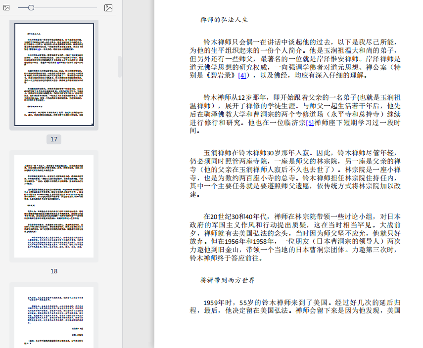 奇。“开悟”是铃木大拙禅道的核心,而他的作品之所以引人入胜,这个眩目的观念居功不少。但在铃木俊隆的这本书里,“开悟”或是