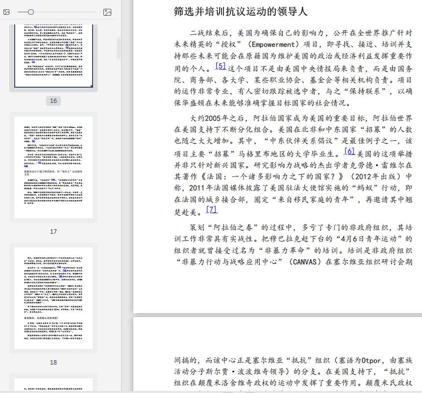该书由法国情报研究中心组织调研,参与者来自8个国家、职业多样,甚至亲历“革命”。涉及多个地区,部分为动乱的核心区、交战区。被采访人员有政府高层、普通百姓。文中均为一手资料,对阿拉伯地区的一系列事件进行深入分析,解构阿拉伯“革命”中起决定作用的外部势力所扮演的角色,特别是美国等一些西方国家通过资助、渗透、媒体和意识形态等影响。