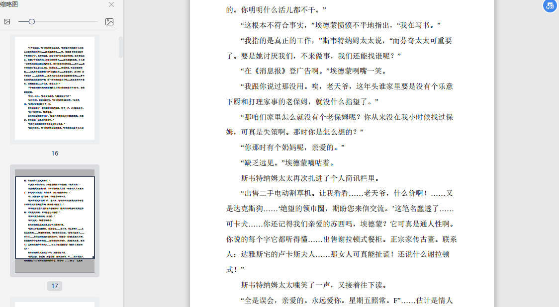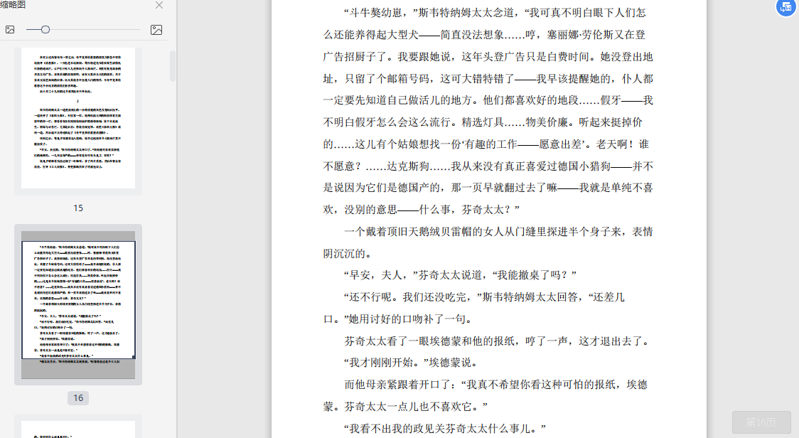 “斗牛獒幼崽,”斯韦特纳姆太太念道,“我可真不明白眼下人们怎么还能养得起大型犬——简直没法想象……哼,塞丽娜·劳伦斯又在登广告招厨子了。我要跟她说,这年头登广告只是白费时间。她没登出地址,只留了个邮箱号码,这可大错特错了——我早该提醒她的,仆人都一定要先知道自己做活儿的地方。他们都喜欢好的地段……假牙——我不明白假牙怎么会这么流行。精选灯具……物美价廉。听起来挺掉价的……这儿有个姑娘想找一份‘有趣的工作——愿意出差’。老天啊!谁不愿意?……达克斯狗……我从来没有真正喜爱过德国小猎狗——并不是说因为它们是德国产的,那一页早就翻过去了嘛——我就是单纯不喜欢,没别的意思——什么事,芬奇太太?”