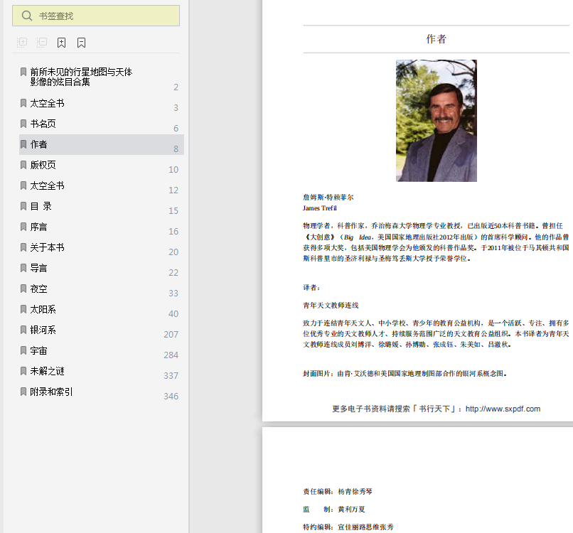 作者:詹姆斯·特赖菲尔(James Trefil),物理学者,科普作家,乔治梅森大学物理学专业教授,已出版近50本科普书籍。曾担任《大创意》(Big Idea,美国国家地理出版社2012年出版)的首席科学顾问。他的作品曾获得多项大奖,包括美国物理学会为他颁发的科普作品奖。于2011年被位于马其顿共和国斯科普里市的圣济利禄与圣梅笃丢斯大学授予荣誉学位。
