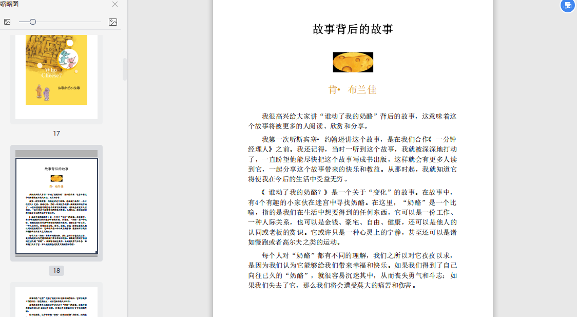 如果是,恭喜你!同时,本书中的小故事可以时刻提醒你,让你每天都看看你的奶酪是否开始变质。