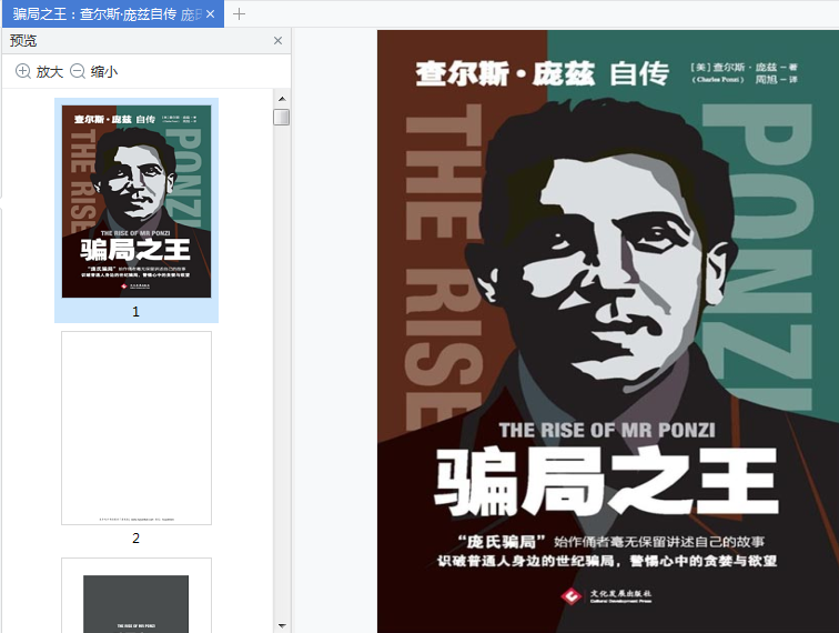 查尔斯·庞兹,“庞氏骗局”始作俑者,历*著名的投资诈骗犯,用自传讲述自己的故事。