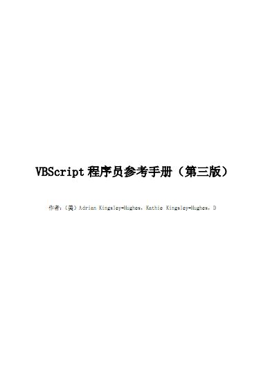 VBScript程序员参考手册(第三版)PDF格式,比较清淅的参考手册,,VBScript程序员参考手册涉及一些与VBScript相关的技术,包括Windows脚本宿主(WSH)。如果您具有Visual Basic知识,那么前三章中绝大部分内容(变量、数据类型、过程、控制流等)对您来说都很熟悉。这本手册还将为您介绍如何深入到Windows操作系统内部,通过几行代码实现操作系统环境的改变。