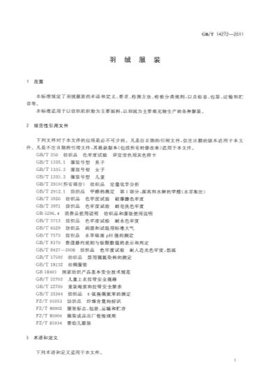 GB/T 14272-2011标准(羽绒服装) pdf免费电子版