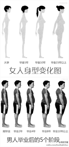 昨天下午,本报做的调查显示,433名参与投票的上班族中272人称“上班三年后,果断胖了”,达投票总数的60%以上。自述吃胖原因,90%以上的投票者称主要是“长期伏案工作、职场应酬、作息不规律以及缺乏锻炼”。而将军肚、粗大腿和胖屁股是最常见的“过劳肥”直接表象。