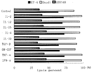 Fig 3Effects of varied cytokines on cytotoxicity of γδTILs to EL-4,HR8348和Daudi tumor cells at E∶T ratio of 5∶1 Control means control test without adding to any cytokine\};, http://www.100md.com