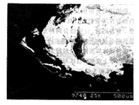 CCH在4周电镜下未见纤维组织,成骨现象活跃,新生骨逐渐钙化,与C/C 4周时差别较明显,到16周时成为成熟致密的密质骨。EDAX测得界面硫值极微,钙、磷富集,提示为骨性结合。