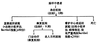 1 医疗康复 主要是指老年脑卒中患者在急诊医院、康复医院及老人日间医院内所获得的康复服务(附图)。