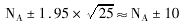 当N=100和P=1/2,NA的方差为25,近似95%分组数目置信带(bound)为: