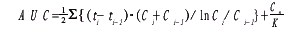 ②计算AUC遵循的原则为:对于血管外给药AUC采用公式(3)求算;对于静脉给药,0-t 时间的AUC 采用公式(4)求算;若 Ci > Ci-1 ,则采用公式(3)求算。