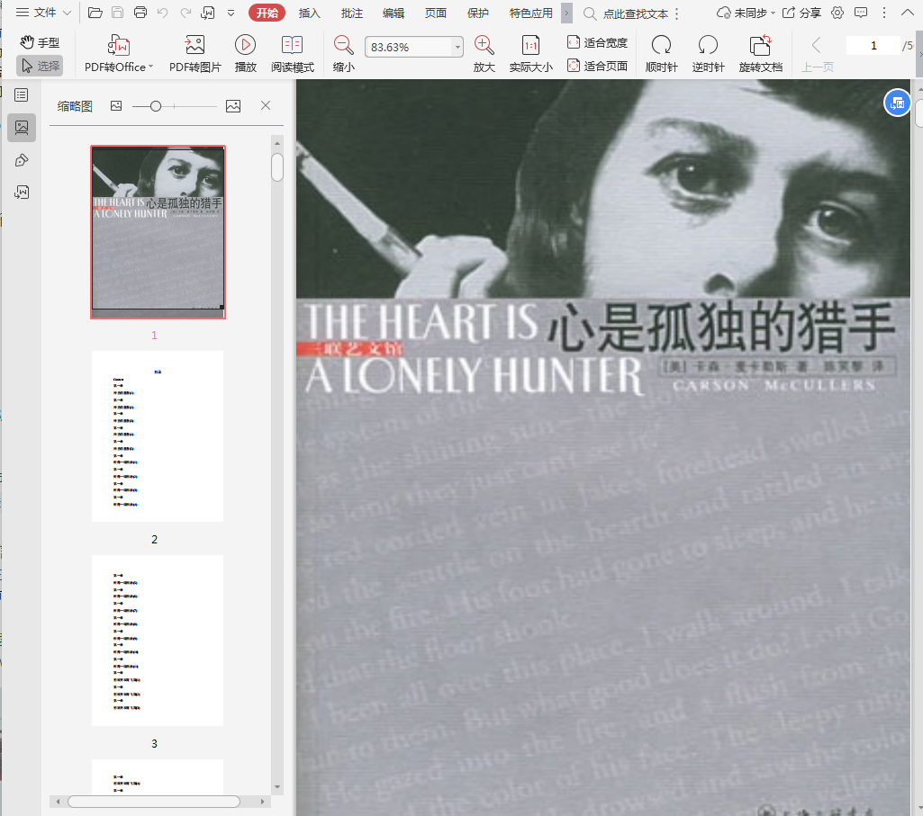 谁能画出孤独的样子?这是阅读麦卡勒斯之后,久久在我心里徘徊的一个问题,孤独原来总是有着不同种的颜色,梵高的孤独是流光四溢的灿烂星空,马尔克斯的孤独担负着的是一个民族。海明威的孤独总带着硬硬的壳,而麦卡勒斯的孤独却是木质的,仿佛我心中的孤独,早已随着我的年华老去长成了一棵参天大树,它笔直的冲向天空,向着那虚无生长,什么也无法将它阻挡,直到有一天,我们和死亡相逢,它使你强大,但它和任何人无关。它深深的扎根在你的生命中,永远不会退场。
