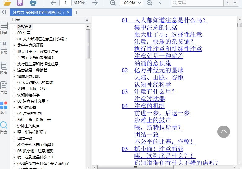 注意力:专注的科学与训练,这是一本关于心理学注意力相关的,全书一共分为13个章节介绍,在书中读者能够学习到注意力的科学训练,值得一看。