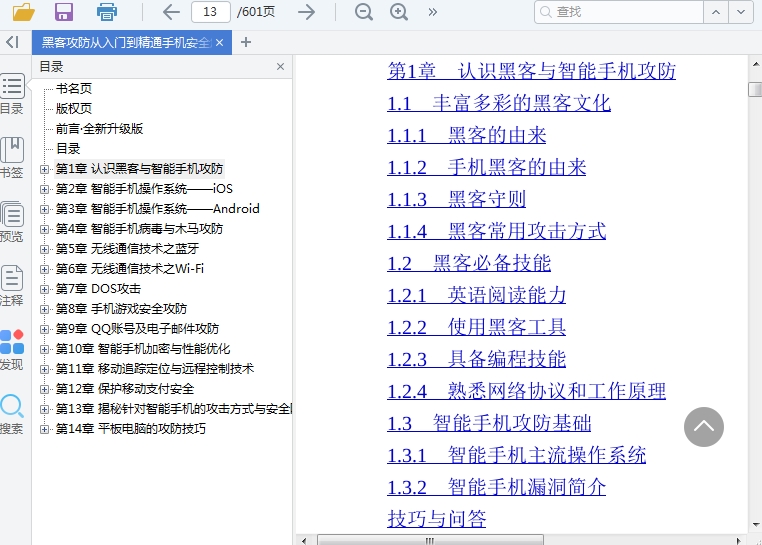 黑客攻防从入门到精通,这是一本针对智能手机写的安全,全书一共有14个章节内容,为读者详细的介绍了智能手机的防攻击与安全防范。