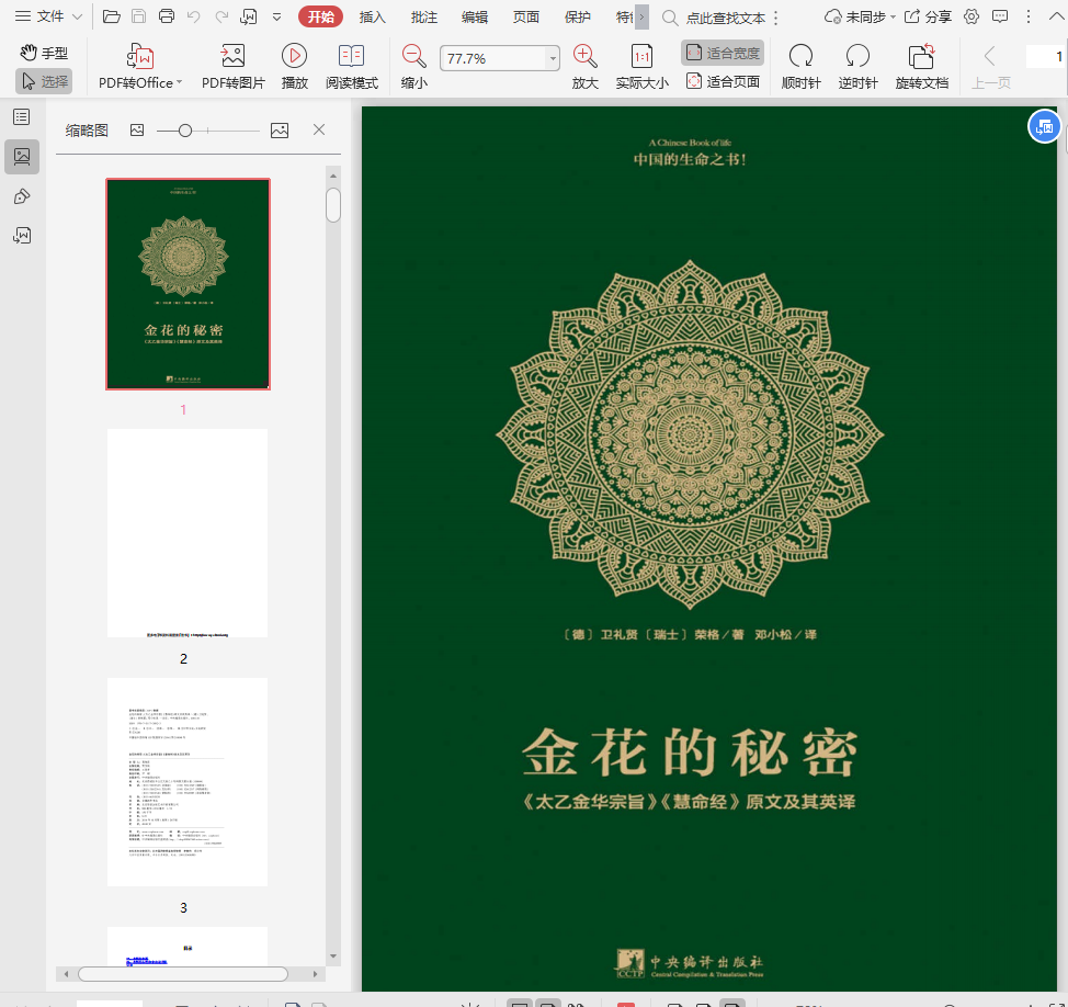 本书为荣格对道家经典《太乙金华宗旨》的长篇评述,为东西方思想深度碰撞的经典着作。20世纪20年代,德国着名汉学家卫礼贤将《太乙金华宗旨》译成德文,荣格读后大为赞叹,声称此书帮他解决了研究集体无意识过程中遇到的困境。如荣格所说,中国用朴素的语言揭示出深刻的真理,带来了金花的优雅芬芳,使西方人对于生命和道有了新的感受。