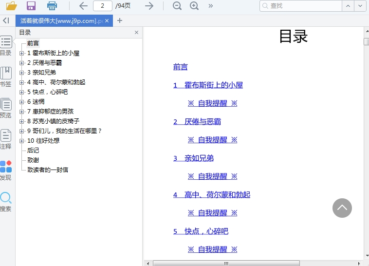 活着就很伟大,这本书为读者讲述了一个抑郁症的少年的岁月时光,全书一共十个章节,作者在文字内容描述得非常引人入胜,值得一读。