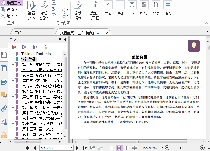 本书详细介绍和阐述了狼的各种卓绝的本领和品质,读者可以在此尽情地领略这奇异动物的种种魅力。然而更重要的是.我们在充分挖掘狼性特点的基础上,做了进一步地发挥,贴切而巧妙地把狼道智慧引申到我们的生活中来,并结合大量实例。全面阐释,深度分析,做了有观点、有价值的评述。从狼性坚韧、狼性无畏、狼性多变、狼性准则、狼性心态、狼性追求、狼性忍耐、狼性狂野、狼性残暴、狼性纪律、狼性智慧、狼性团队、狼性沟通、狼性好奇、狼性专注15个角度,有深度有力度地展示了狼道智慧。