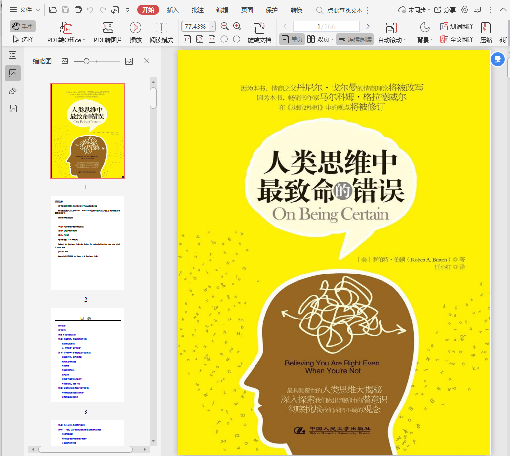 人类思维中最致命的错误是关于人类思维的书籍,主要讲述了在日常生活中人们的大脑所想和我们实际所了解的知识是有差异的,书中列举了很多的生活案例进行分析。