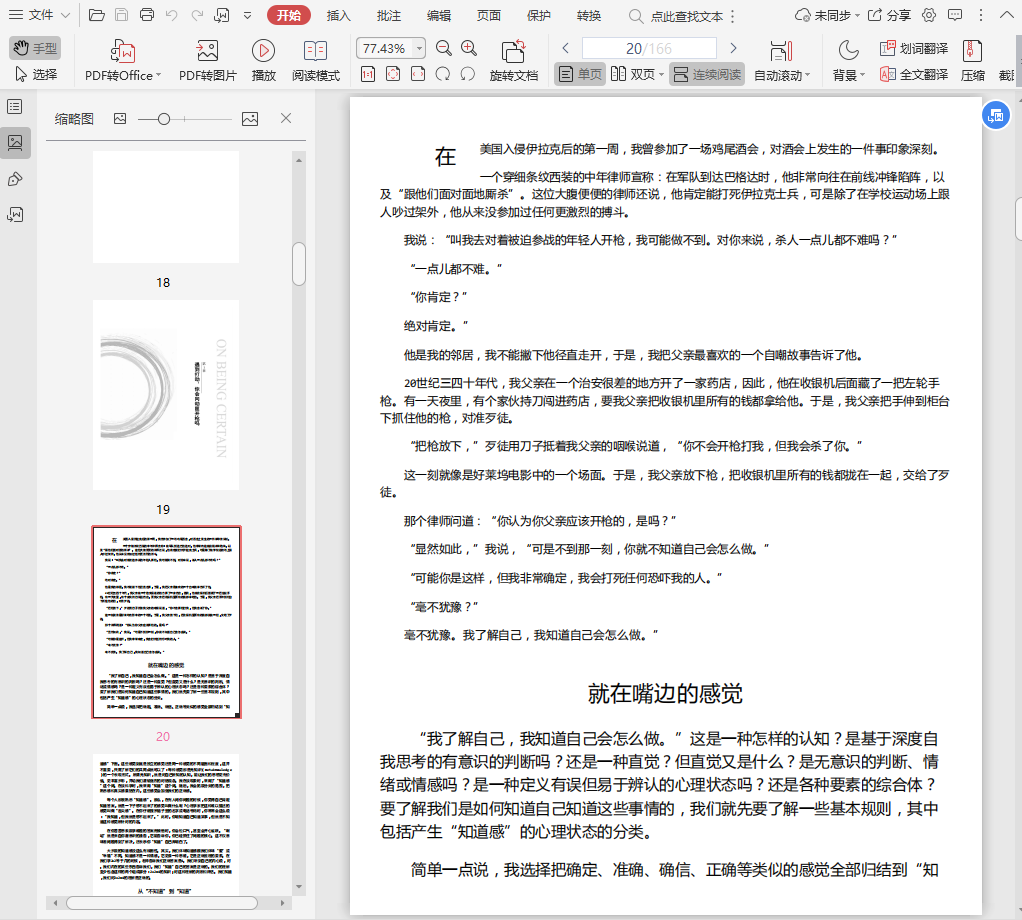 我们通过感觉而不是推理来了解思维的属性和质量。像确定感、确信感、正确