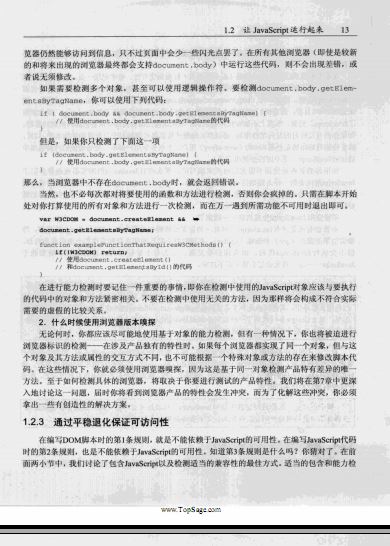 这些新的能力也带来了许多诱感。我们在进行DOM脚本编程时,往往因为热衷于一些华而不实的新特性,而背离了良好清晰的Web设计原则。因而,纵贯全书作者都会强调最佳实践的价值,提供很多强调可用性和可访间性的解决方案,这样对最终用户和你-开发者或设计者而言,都是有益的。