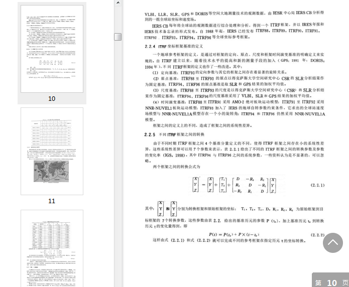 地面坐标参考基准的建立包括两个方面的内容(陈俊勇,1991):一是从理论上确定地面参考系统的定义或模式,明确定义地面参考系统的地球进动、章动和极移理论,以及这一理论所涉及的地球模型:二是建立符合这一地面参考系统的坐标参考框架,坐标参考框架由一些具体的地面框架点组成,通过框架点在地面参考系统中的明确坐标值和速度场,来实现和维持所定义的地面坐标参考系统,有了坐标参考框架才能真正从实践上将地球上任意点的位置及其变化在地面参考系统中加以定量的描述 ......