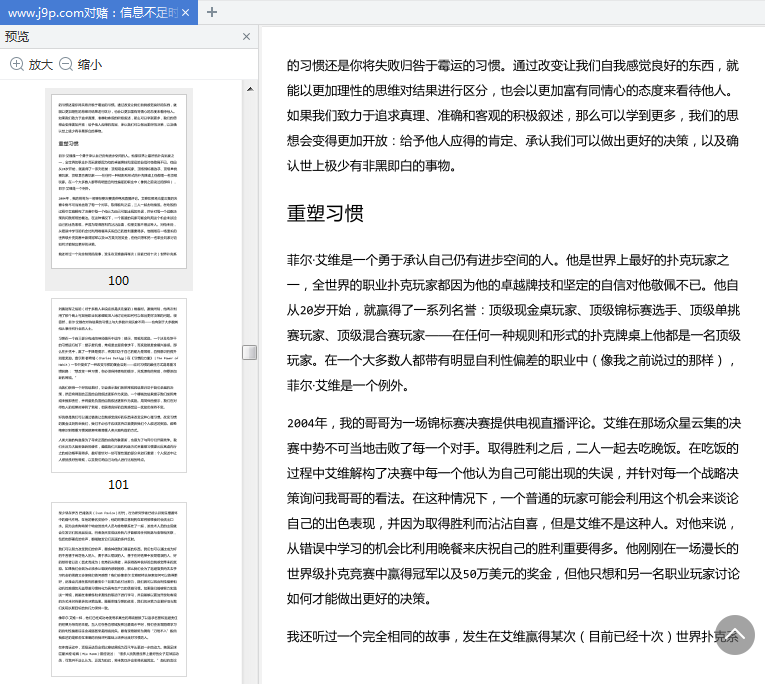 咎于运气,而将赢牌归功于技能,这说明他持续地高估了一张7和一张2的取胜概