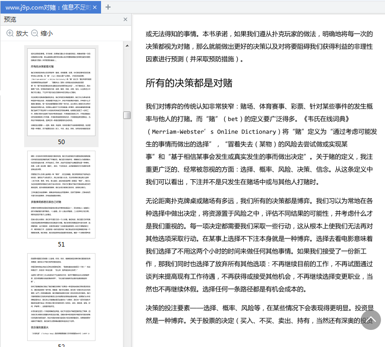 己的英明决策感到骄傲。而当输牌时(这是多数情况),他却把它当作运气不好。