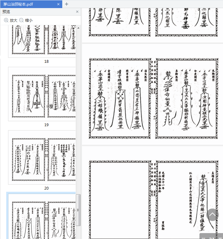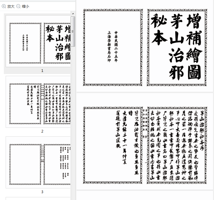 非常神秘的一本古文书籍,中华民国二十五年上海启新书局印刷的版本,这里附上高清的茅山治邪秘本版文件,有兴趣的可以。