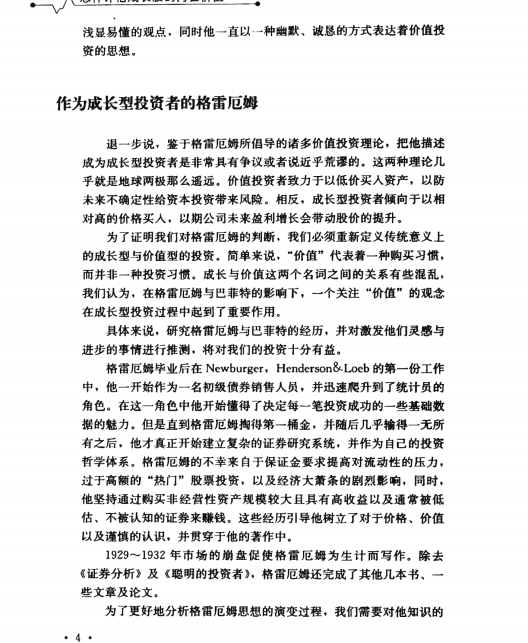 本杰明·格需厄姆在1949年出版的著作《聪明的投资者》中对成长塑公司给出了自己的定义:“成长股可以被定义为那些在过去敷年的时间内表现得比大部分股票要优异,并且在未来数年仍可能继续表现得卓越的股票。”在1962年版的《证券分析》一书中,本杰明.