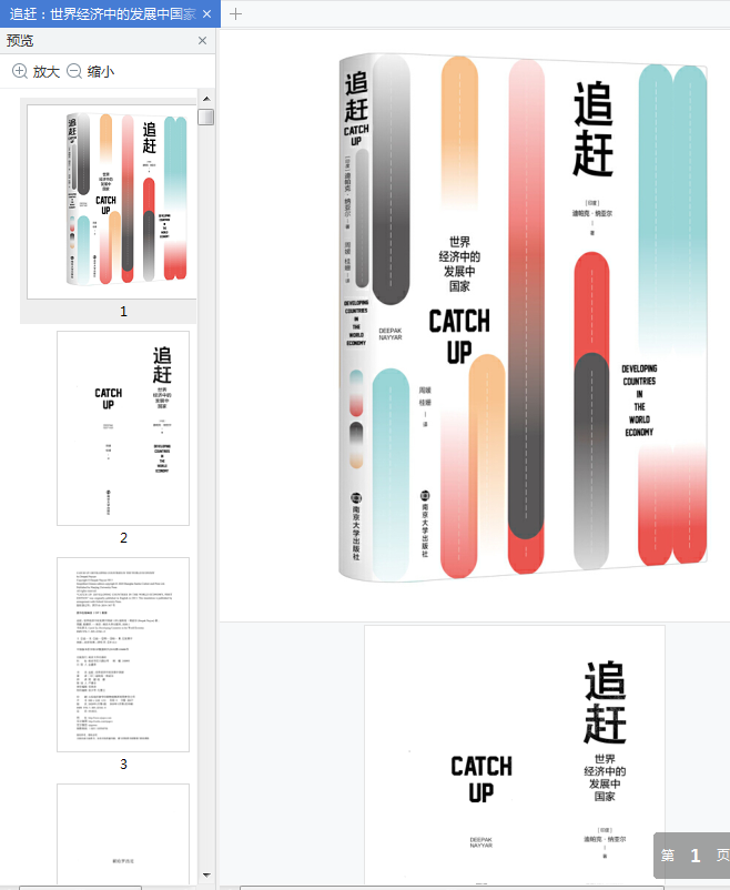 追赶:世界经济中的发展中国家一书是由印度著名的经济学家帕迪克·纳亚尔著作,该书所论述的时间跨度近一千年,但又着重于近六十年的发展,对中国目前的发展处境具有借鉴作用。