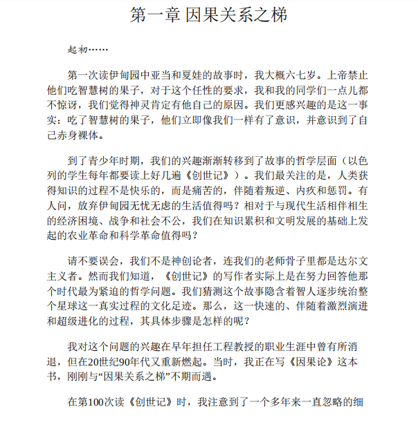 珀尔的《为什么》是笔者所知道的目前已出版的唯一一部因果关系