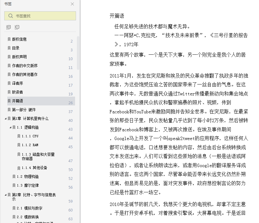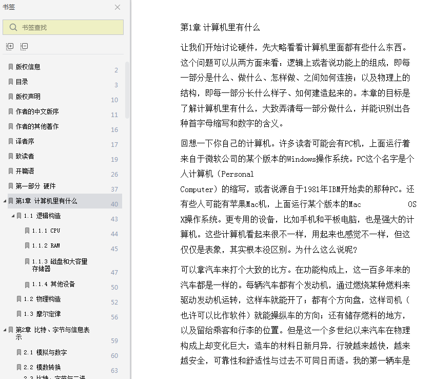 PC这个名字是个人计算机(Personal Computer)的缩写,或者说源自于1981年IBM开始卖的那种PC。还有些人可能有苹果Mac机,上面运行某个版本的Mac OS X操作系统。更专用的设备,比如手机和平板电脑,也是强大的计算机 ......