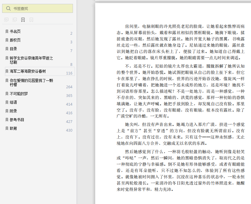 这话听起来很冲,但她非但没有发火,反而把手从餐桌另一边伸 过来,搁在我的手腕上,有点儿想稳住我的意思:“奈绪酱,我喜欢 帮你。不是那样的。我知道这一切对你很难,但别对你的父亲太苛 刻。他是个好人,我知道你打心底是爱他的。他真的在努力,你也应