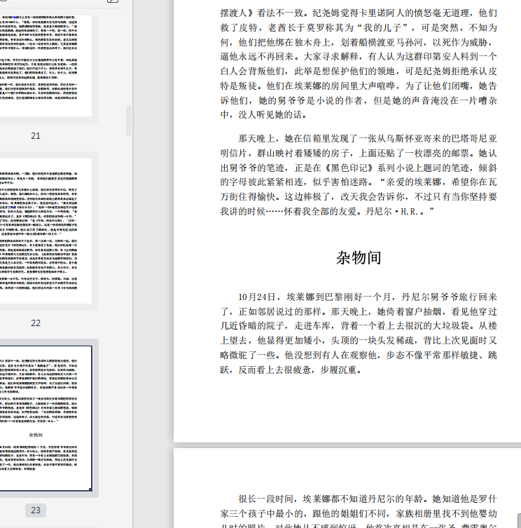 声交谈。她不再轻声细语,说明丹尼尔已经完成了第24本小说。埃莱